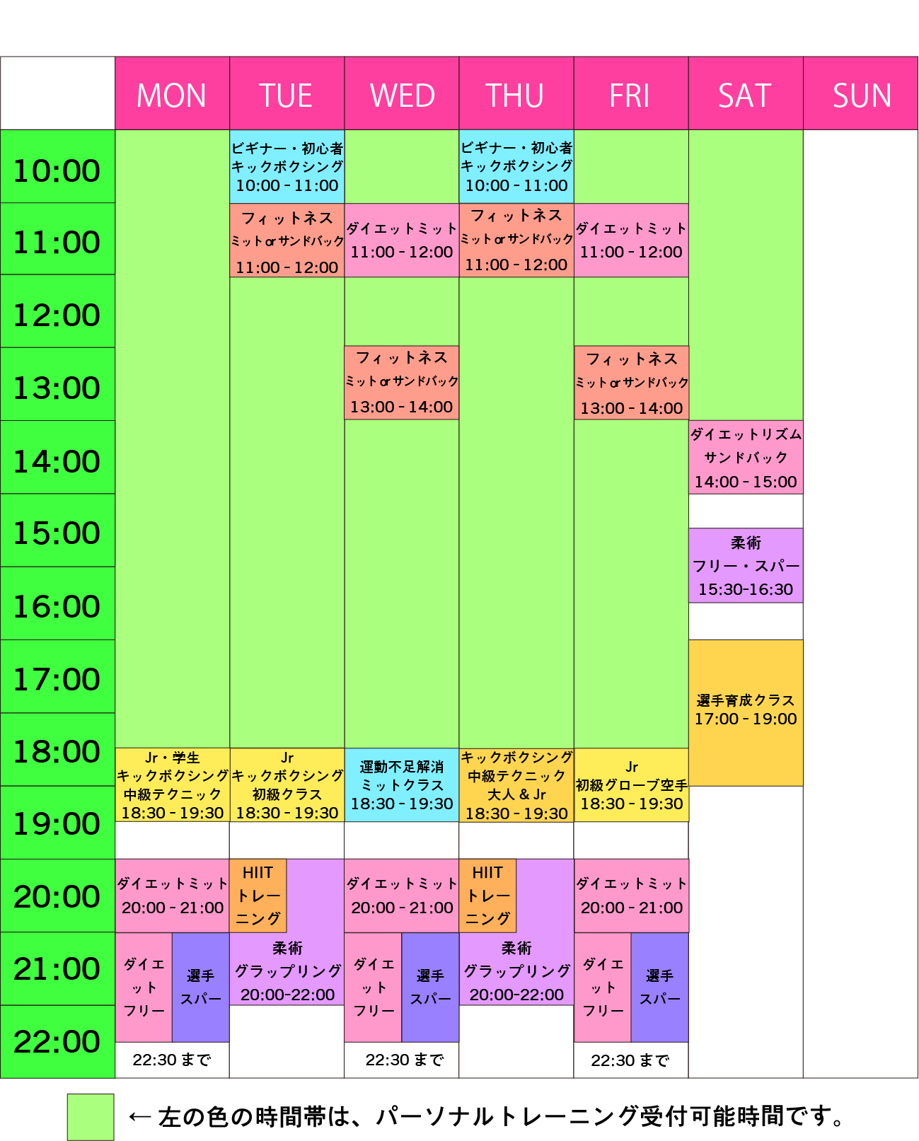 クラスレッスンは朝、昼、夕、夜とダイエット、フィットネスクラスがありどのクラスも楽しくキックボクシング運動が出来ます🎵